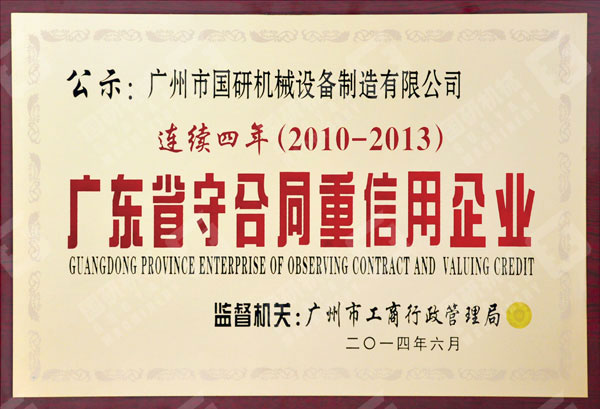 “广东省守合同重信用企业”荣誉称号是对一个企业诚信方面最大的肯定,同时它对于营造一个良好的诚信市场,推动企业的诚信建设具有重要的现实意义。