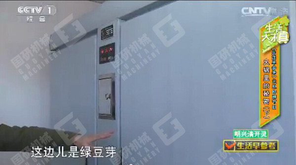 2015年1月3日早8:33,中央电视台一套《生活早参考》( 20150103 元旦特别节目火锅里的秘密) 播出了市场上毒豆芽的生产和危害,并重点播放了位于北京朝阳区东坝后街临77号的良仕德(北京)餐饮管理有限公司所属的快餐店使用国研豆芽机自行生产无公害豆芽的情景,国研牌无公害豆芽机在该节目中进行了详细介绍和推崇。国研牌绿色无公害豆芽机成为抗击毒豆芽最佳的无公害豆芽生产设备,受到食品行业的广泛欢迎。