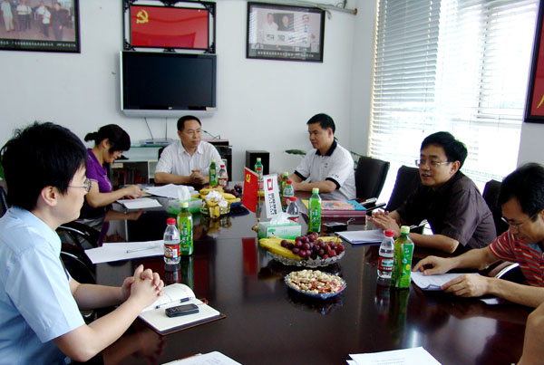 5月19日上午,天河区珠吉街党工委书记杜党勇、副书记陈文荡等领导来到LD.COM乐动体育(中国)科技公司进行深入学习实践科学发展观专题调研。