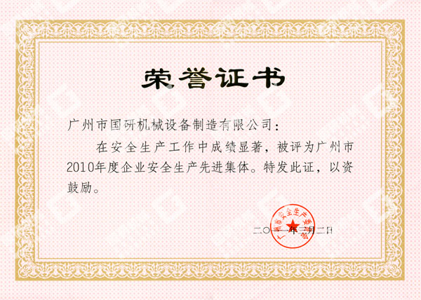 近日,在广州市人民政府召开的安全生产工作总结暨表彰大会上再次传来喜讯,广州市LD.COM乐动体育(中国)科技公司设备制造有限公司被广州市人民政府授予“广州市2010年度企业安全生产先进集体”荣誉称号。这是我司获得中华全国总工会和国家安全生产监督管理总局授予2009年度全国“安康杯”竞赛优胜企业称号后,被授予的又一殊荣。